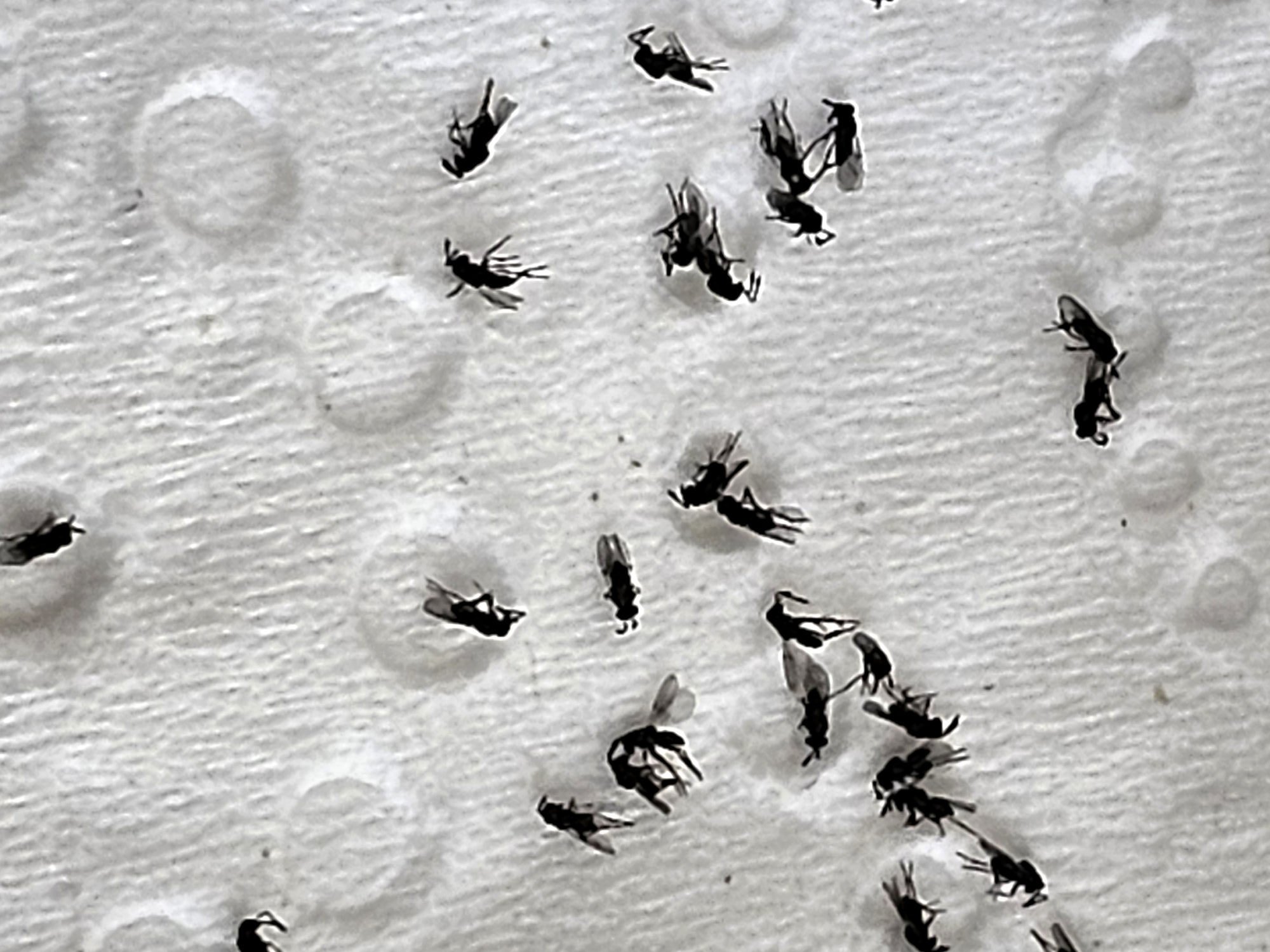 I put the container of parasitic wasps in my freezer. We are working on getting them identified and here are some close-up photos of the dead wasps.